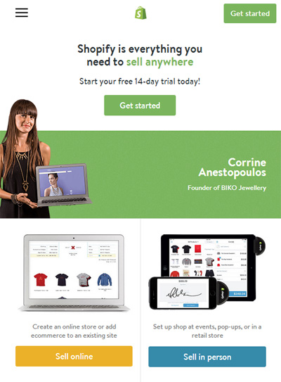 第一眼看到 Shopify 這個(gè)網(wǎng)站的時(shí)候,充滿(mǎn)了小清新的感覺(jué),采用綠色調(diào)的色彩搭配,使網(wǎng)站充滿(mǎn)了活力。其網(wǎng)站制作采用了國(guó)外已經(jīng)流行的 Html5 技術(shù),并且實(shí)現(xiàn)了響應(yīng)式布局,無(wú)論我們?cè)赑C電腦、筆記本電腦、Pad,還是手機(jī)上看,都可以獲得完美的視覺(jué)體驗(yàn)。